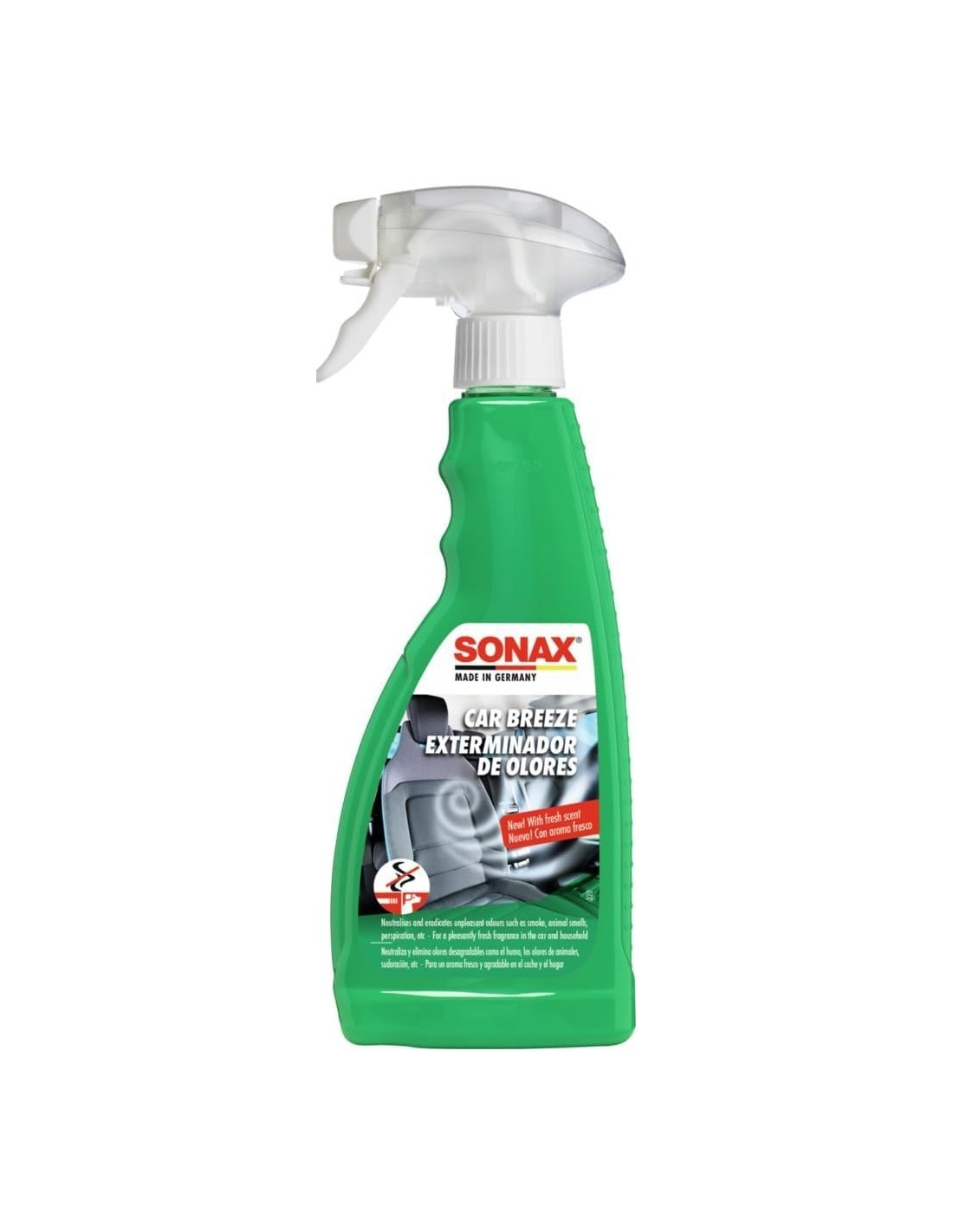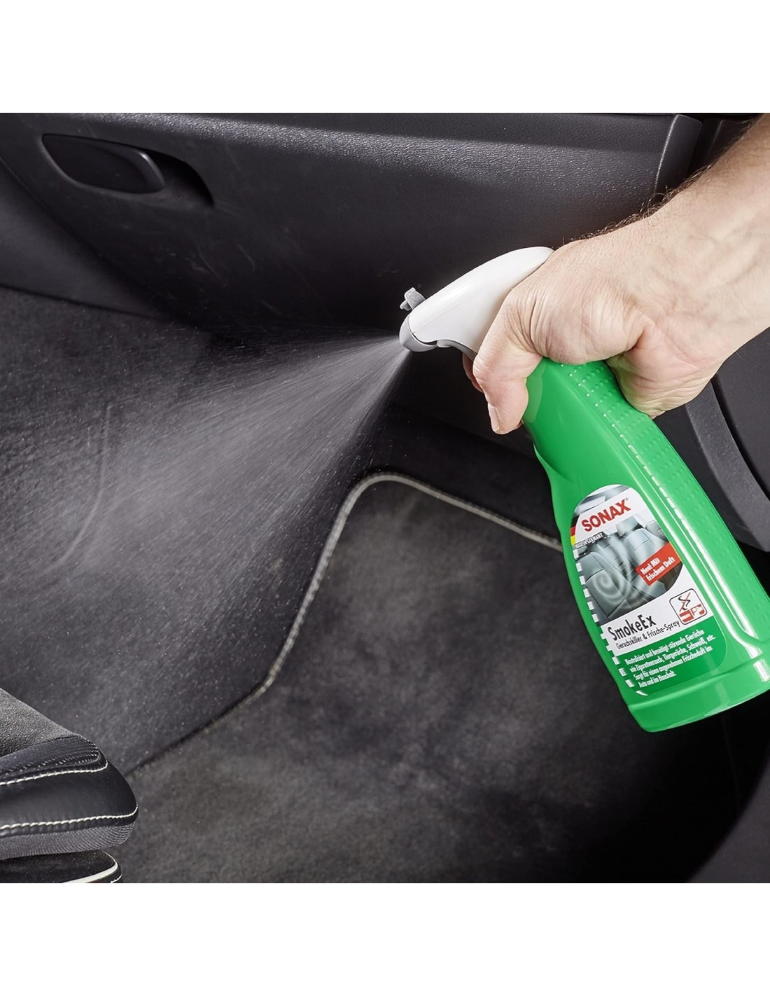 SONAX SmokeEx Ambientador elimina la nicotina, el alquitrán y otros malos olores en el coche, la casa y el baño. El ambientador SONAX neutraliza los malos olores. Pulverice el ambientador SONAX SmokeEx en el lugar donde se ha desarrollado un olor desagradable o utilícelo después de haber eliminado una mancha. Este ambientador está especialmente desarrollado para refrescar el interior del coche y no deja que vuelva el olor desagradable Ni siquiera en condiciones de calor o humedad.