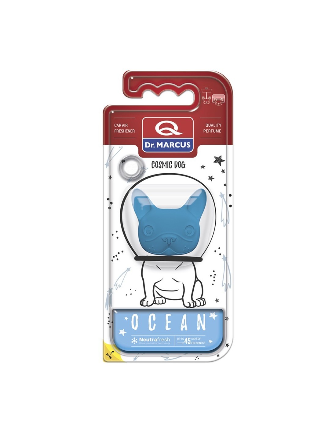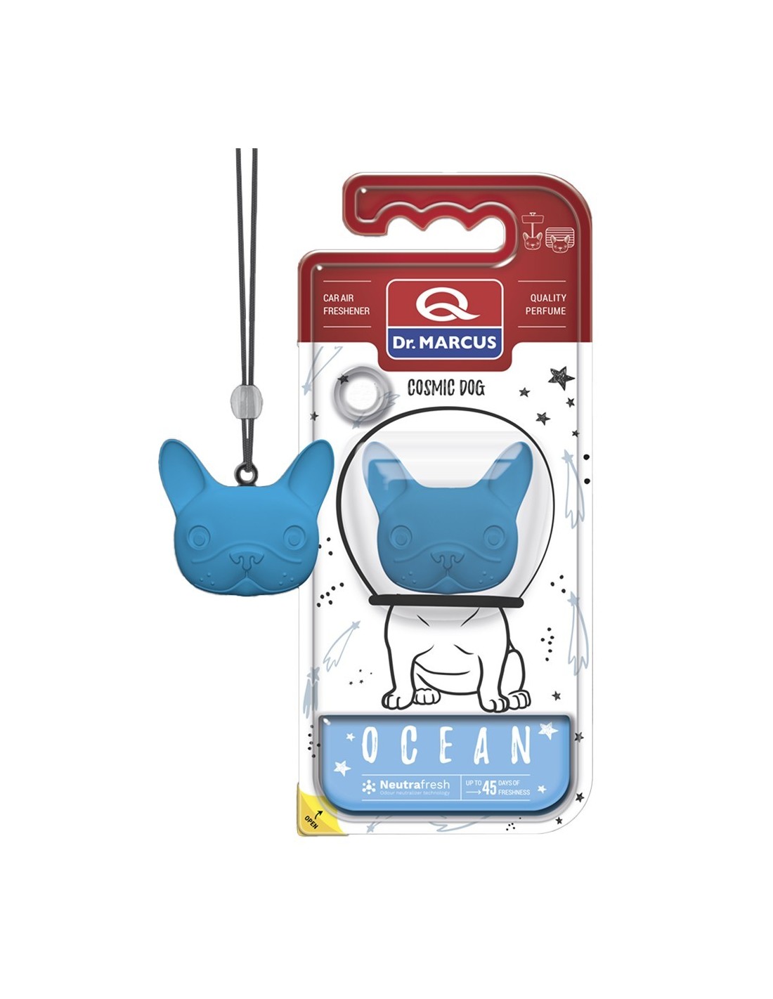 El ambientador de coche Cosmic Dog es un innovador detalle de fragancia creado con la forma de tu mascota favorita: ¡un perro! El producto está disponible en 7 composiciones de fragancias seleccionadas según las tendencias actuales. Cosmic Dog queda genial en cualquier rejilla de ventilación y en un espejo, liberando su fragancia lentamente durante un máximo de 45 días.