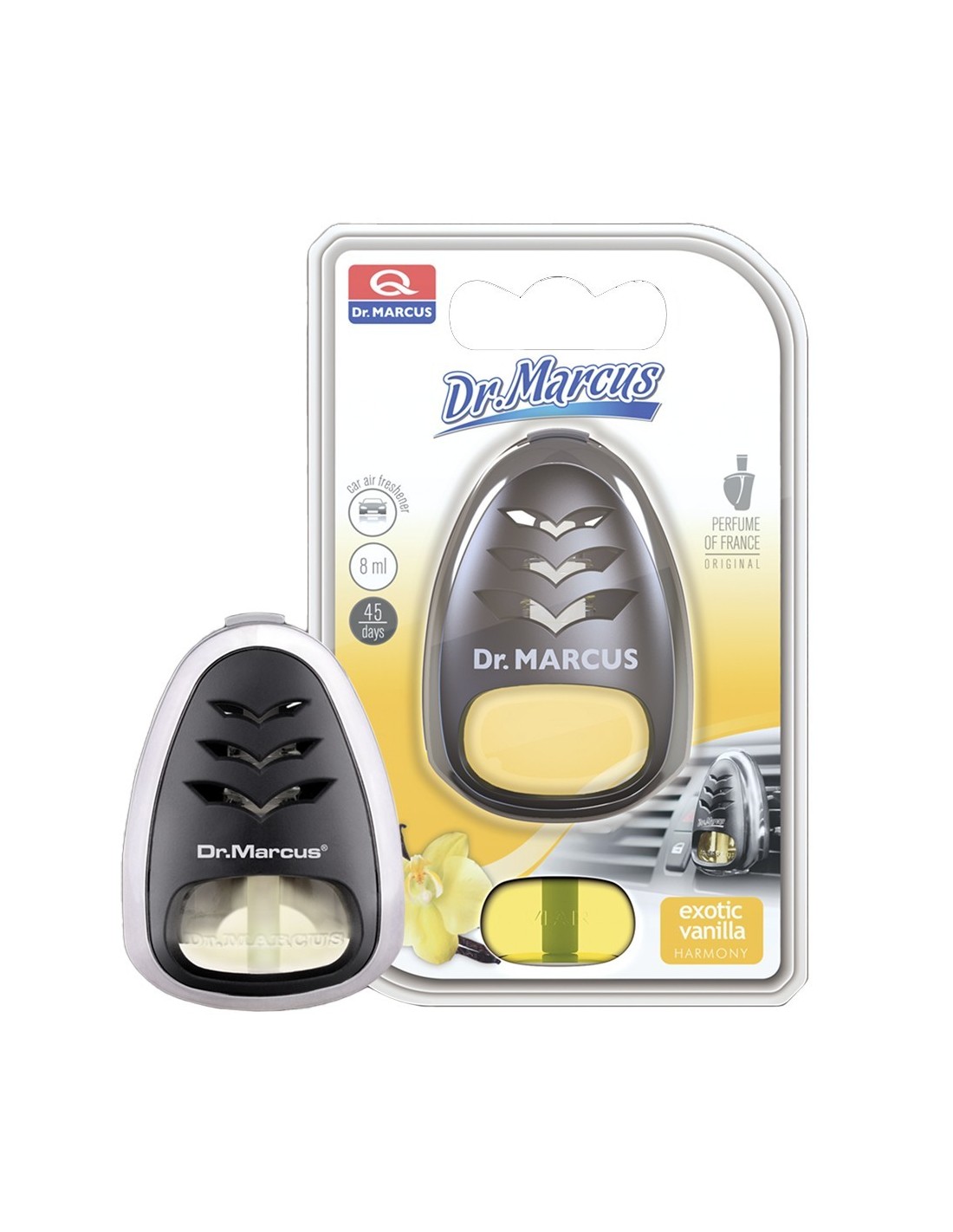 El ambientador para coche Dr. Marcus Harmony se integra armoniosamente en el diseño de cualquier automóvil.