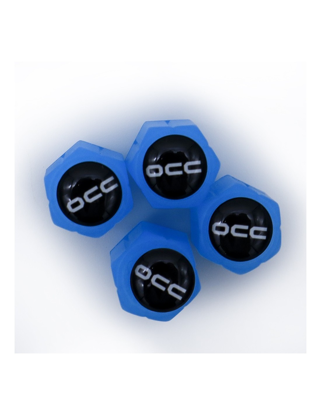 Pack de tapones para válvulas de aire universales fluorescentes azules.