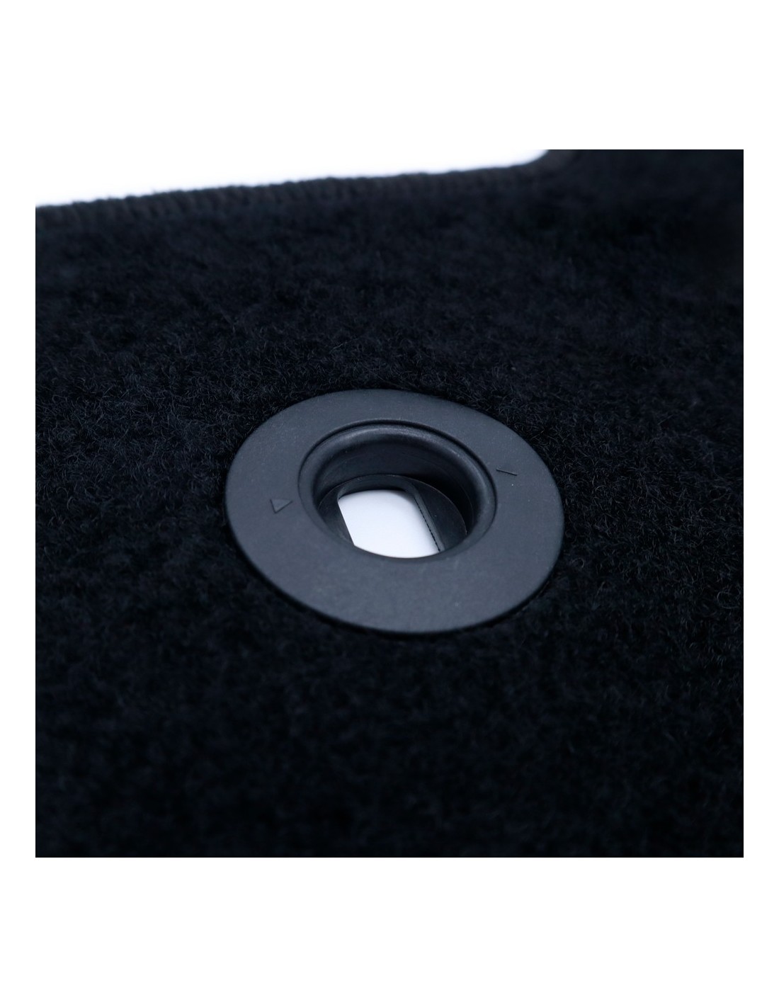 DISEÑO: Alfombras para el coche con el sistema de anclaje original redondo. El emblema y el ribete están completamente bordados en velour.