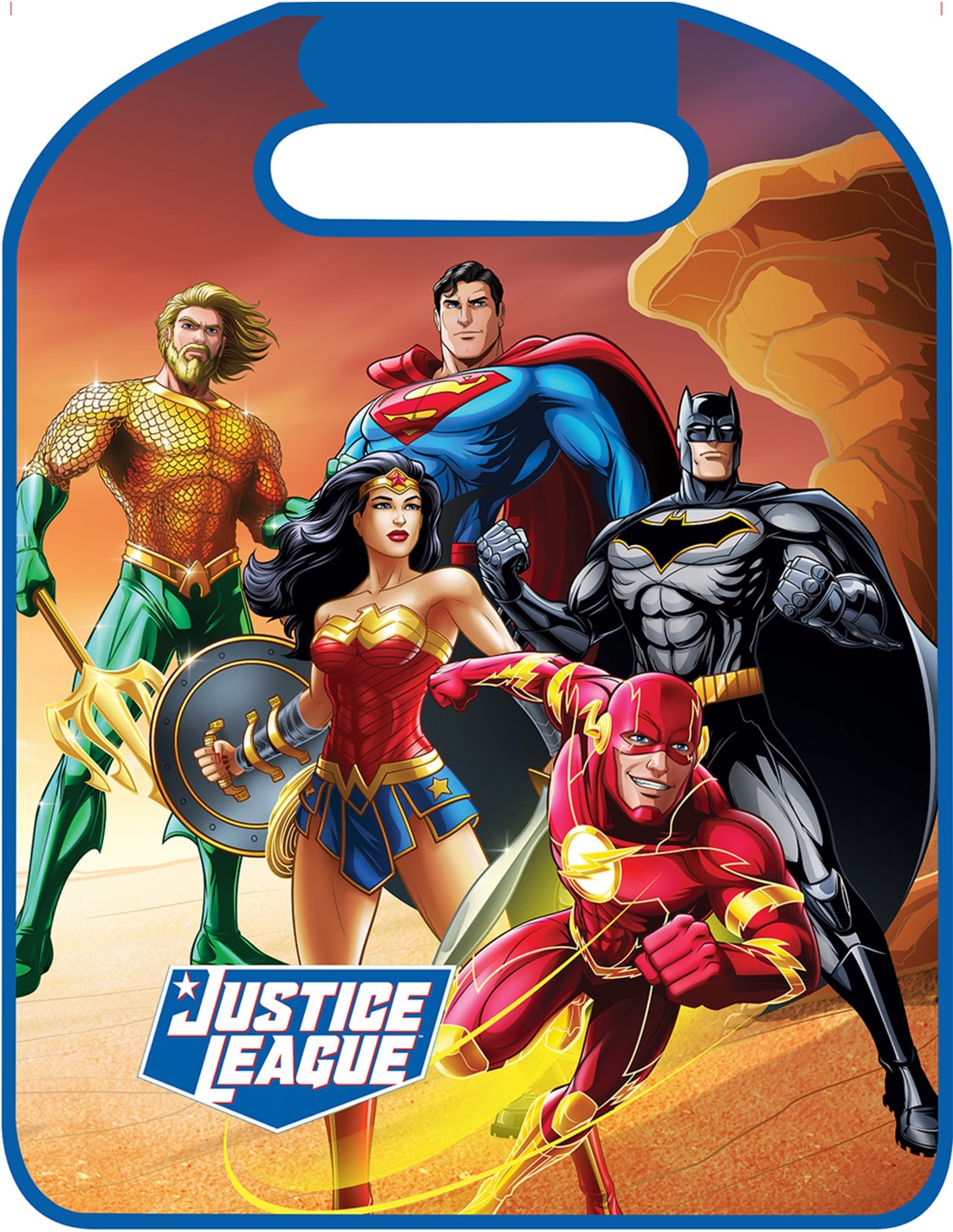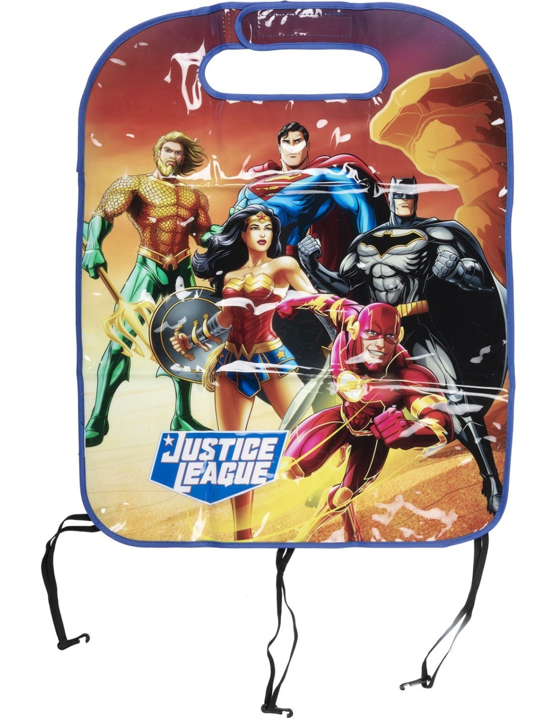 Se adapta a todos los coches y se fija fácilmente al apoyacabezas con velcro Producto probado y certificado de acuerdo con las normativas Europeas Medidas 45x56 cm Producto en PVC resistente. Fácil de lavar. Personalizado con gráficos exclusivos siempre nuevos y cautivadores, con los personajes de Paw Patrol más queridos Ayuda a mantener el respaldo del asiento limpio, lo protege de los arañazos y el deterioro, haciendo el coche más alegre Fabricado de acuerdo con las normas: EN 71-1:2014+A1:2018 - Propiedades mecánicas y físicas; EN 71-2:2011+A1:2014 - Inflamabilidad y EN 71-3;2013 +A3: 2018 - Migración de algunos elementos químicos Liga de la justicia