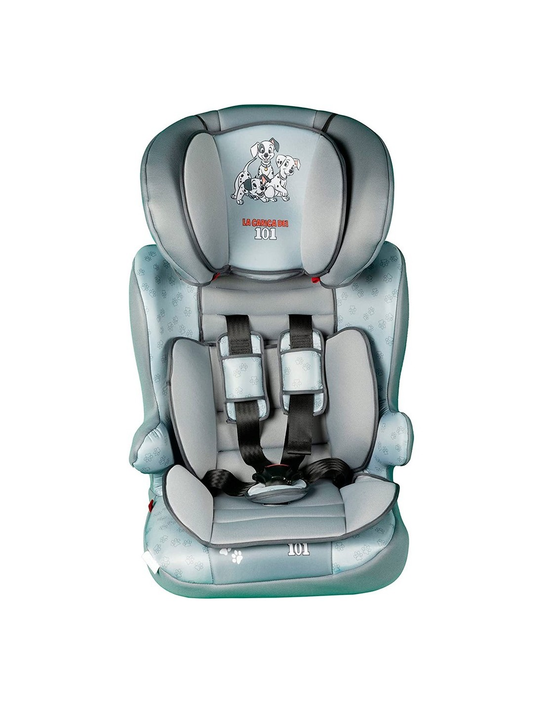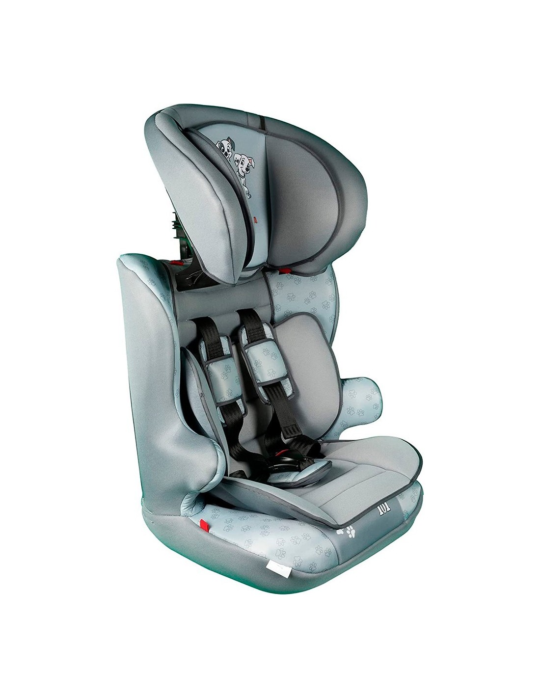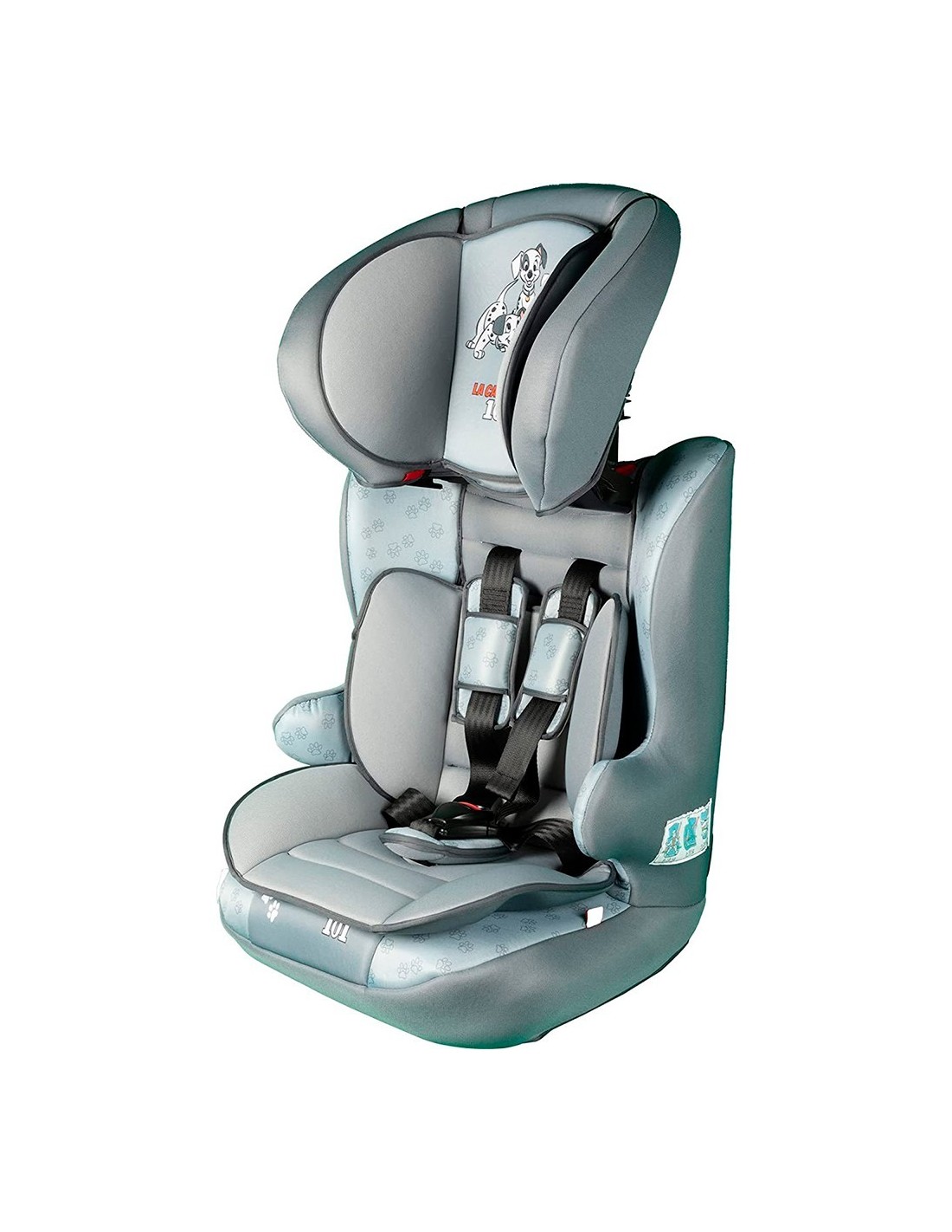 DISEÑO Y AJUSTE: Silla bebe coche 101 Dálmatas en color gris y azul perla. El sistema de fijación es universal. Viene equipada con instrucciones de instalación.