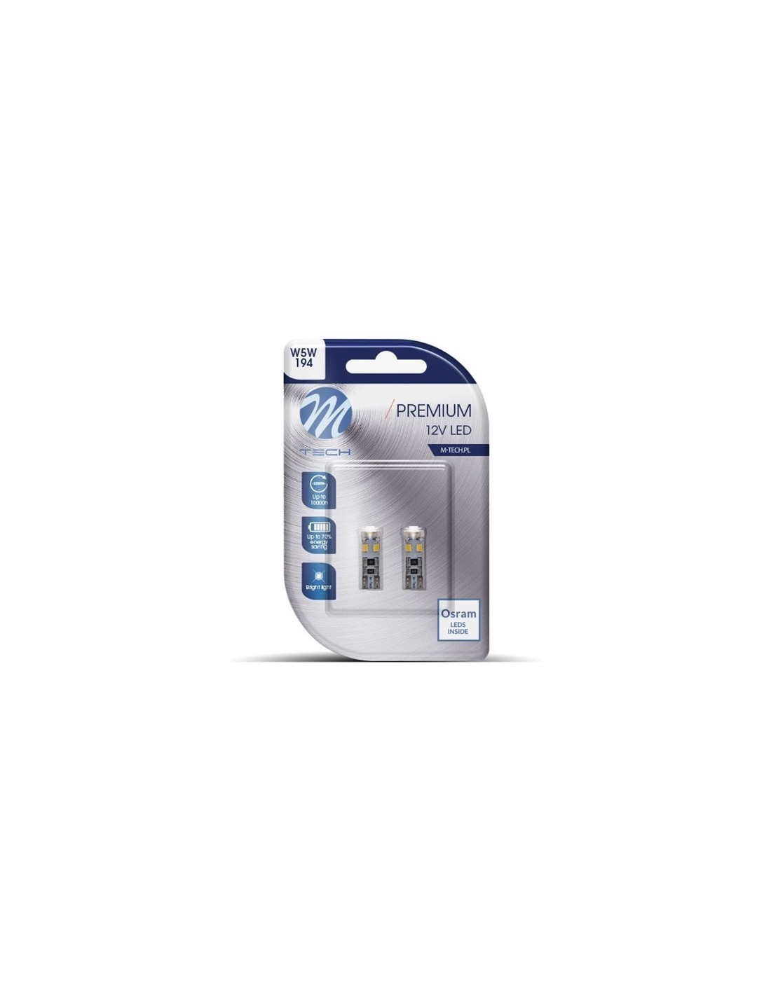 La serie Premium de los LED retrofit de M-TECH combina componentes de alta calidad con un precio atractivo. Se caracterizan por una durabilidad excepcional, gracias al uso de un estabilizador de tensión con una tolerancia de hasta 16V. Esta característica las hace resistentes a los picos repentinos de tensión, eliminando el riesgo de que se quemen y garantizando un funcionamiento duradero y fiable. Esta combinación de seguridad y durabilidad constituye la base de su calidad. Las características mencionadas garantizan la fiabilidad, que se traduce directamente en seguridad.La disponibilidad de todos los modelos populares de la gama de bombillas Premium significa que cada conductor puede encontrar un producto que satisfaga perfectamente sus expectativas. La riqueza de la gama de productos y la variedad de modelos confirman que M-TECH Premium es una elección fiable para aquellos que esperan una excelente calidad y funcionalidad en uno.ESPECIFICACIONES TÉCNICAS:Designaciones: W5WSímbolo de la base: W2.1x9.5dNúmero de LEDs: 8xSMD2835Color: blanco fríoPotencia: máx. 2WLúmenes: máx. 68Tensión: 12VCANBUS: Si