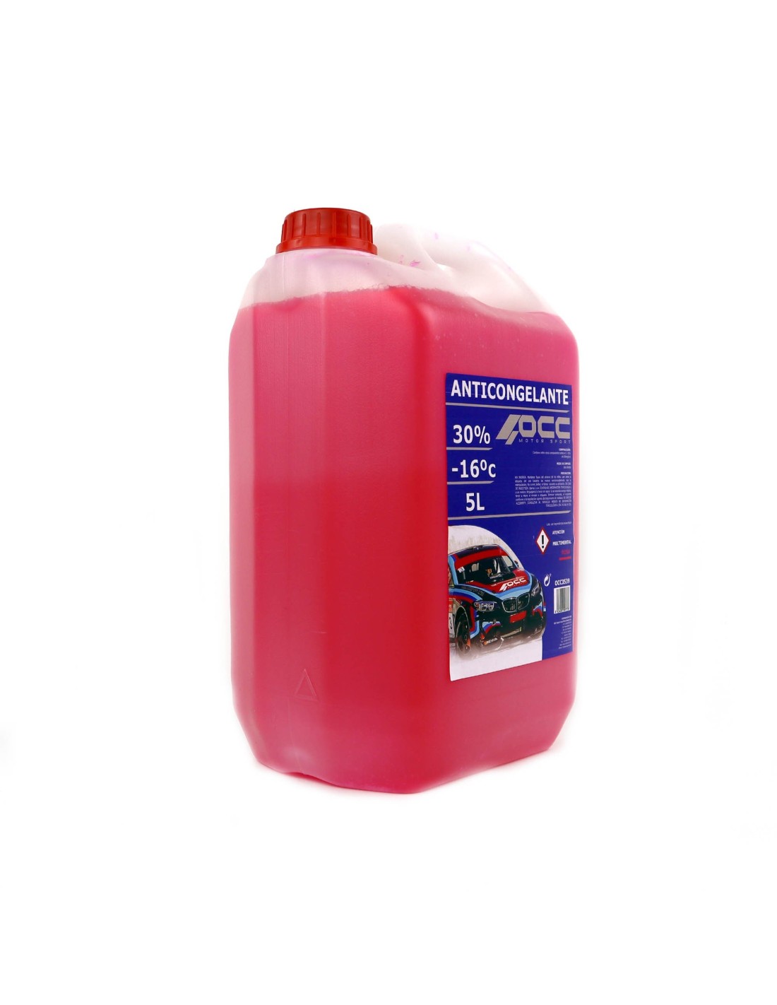 GENERAL: Mantén a salvo el motor de tu coche con este anticongelante 30 % rosa 5 litros -16ºC de OCC Motorsport válido para cualquier vehículo de motor. Fórmula mejorada, testada en competición. Este líquido refrigerante rosa es muy cómodo de llevar en el coche para poder usarlo en cuanto sea necesario. Mejora la visibilidad y aumenta la seguridad y el confort durante la conducción.