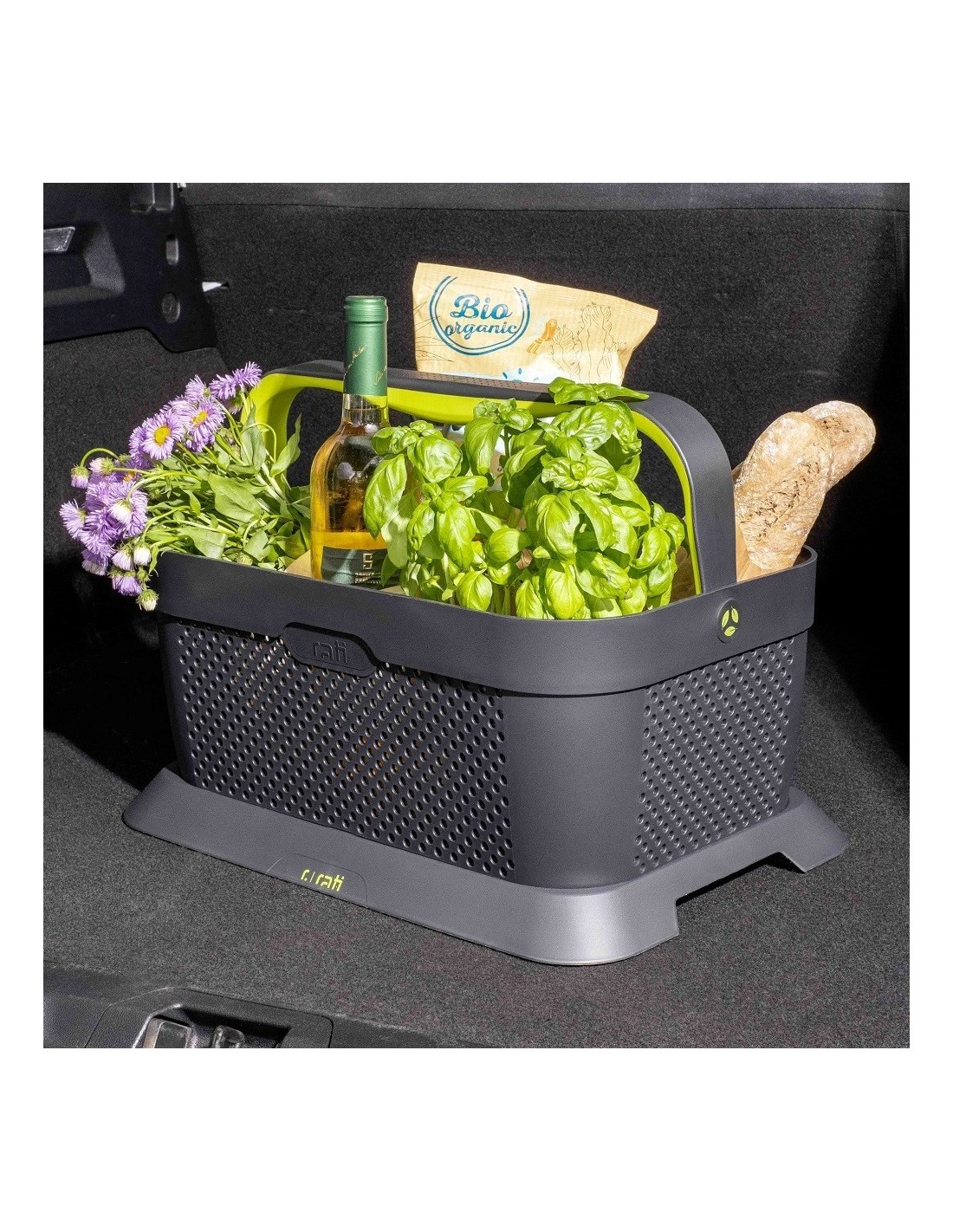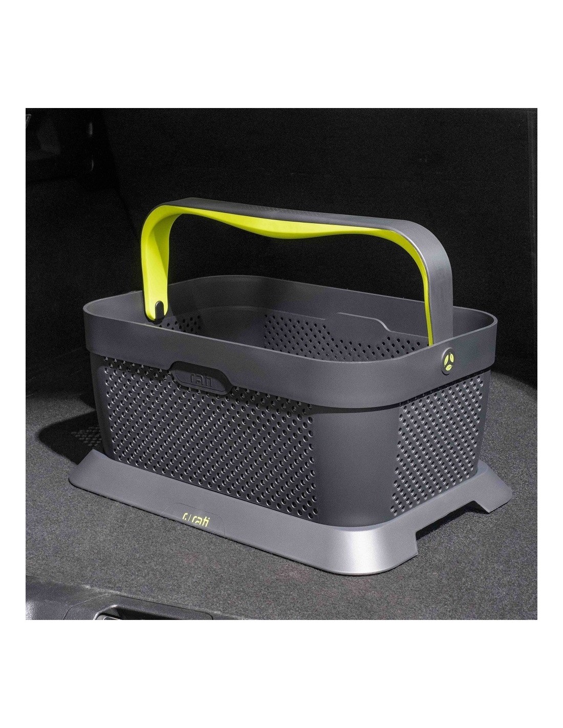 Rati BASKET - La única cesta de la compra diseñada para su uso en el coche. - Lugar seguro para sus artículos sueltos con un adaptador de fijación protegido contra deslizamiento y enrollamiento - Uso ergonómico, sencillo y con una sola mano. - Su volumen es el mismo que el de las cestas plegables para coche, sin la molestia de tener que plegarlas hacia dentro y hacia fuera. - Puedes llevarlo a la tienda, de esta forma podrás realizar toda la experiencia de compra de forma higiénica utilizando tu propio producto. - Adecuado para guardar cables de carga u otros dispositivos para el automóvil. - O puedes llevarlo al gimnasio, de picnic o al parque infantil ¡tú decides! DISEÑO MODERNO Un producto europeo con un diseño moderno que se integra con las líneas de cualquier coche. Nuestros diseñadores galardonados con RedDot se aseguran de que todos nuestros productos encajen perfectamente en su automóvil, no solo brindando funciones sino también agregando estilo. ESTÁNDARES DE CALIDAD RATI - Fabricado con un 92,3% de plástico reciclado. - Diseño duradero y resistente. - Súper fácil de limpiar. FÁCIL DE INSTALAR: simplemente coloque el adaptador de fijación en el maletero, sin necesidad de instalación, perforación o lectura de interminables manuales de instrucciones. - Evita que la cesta se caiga y se deslice, sobre cualquier superficie (textil o bandejas de plástico para el maletero). - Todo lo que necesitas hacer es colocar la cesta en el adaptador, la mantendrá en su lugar incluso durante un viaje con baches. Como si estuviera pegado a la superficie. FABRICANTE Rati es una empresa innovadora de desarrollo de productos, desarrollador y proveedor de accesorios originales para automóviles desde 1986.