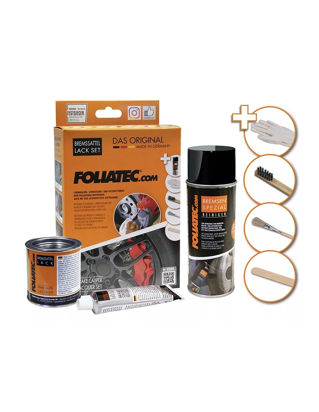 CONSEJO: ahora también aplicable con pistola de pintura gracias a nuestra nueva dilución. El juego de laca para pinzas de freno incluye: Limpiador de frenos, pintura 400 ml y 125 ml así como 50 ml de endurecedor Pincel de acero, brocha, espátula, 1 par de guantes desechables El juego de pinza de freno NEON incluye: Limpiador de frenos (400 ml) + pintura base (125 ml) + laca (125 ml) + endurecedor (50 ml) 1 cepillo de acero, 2 brochas, 2 espátulas, 1 par de guantes desechables.