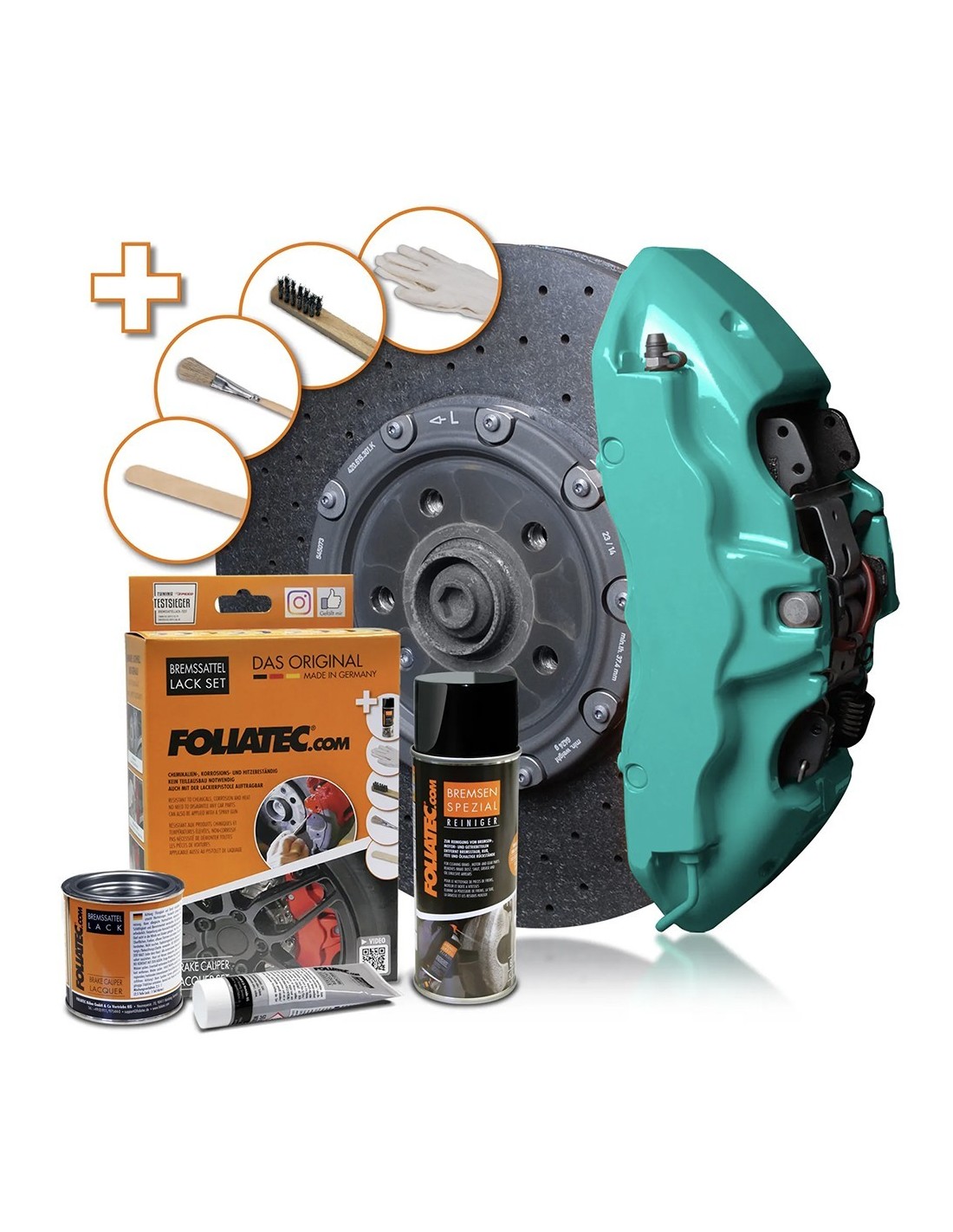 INFORMACIÓN DEL PRODUCTO Con la pinza de freno y la pinza de freno NEON le da a su vehículo un aspecto muy individual y deportivo. Sella y conserva permanentemente la superficie y es resistente a productos químicos, a la corrosión y al aceite. Tiene un brillo duradero y es fácil de limpiar. Con la capa base incluida, nuestra pinza de freno NEON muestra una luminosidad extremadamente intensa. Juego de 7 piezas o 10 piezas (para colores NEON) resistente al calor resistente a productos químicos, a la corrosión y al aceite aplicación fácil y exacta con un pincel no hay necesidad de desmontar ninguna pieza de automóvil suficiente para 4 pinzas de freno Use colores NEON solo con la capa base incluida CONSEJO: ahora también aplicable con una pistola de pintura debido a nuestra nueva dilución. El juego de laca Pinza de freno incluye: Limpiador de frenos, pintura de 400 ml y 125 ml, así como 50 ml de endurecedor Cepillo de acero, cepillo, espátula, 1 par de guantes desechables El juego de pinza de freno NEON incluye: Limpiador de frenos (400 ml) + Basecoat (125 ml) + laca (125 ml) + endurecedor (50 ml) 1 cepillo de acero, 2 cepillos, 2 espátulas, 1 par de guantes desechables APLICACION Retire las ruedas. Limpie la pinza del freno con el cepillo de acero incluido y el Limpiador de frenos incluido. Mezcle la pintura de la pinza de freno y el agente de endurecimiento con la espátula. Para colores NEON: Agite la capa base blanca con la espátula y aplique en una capa delgada pero bien cubierta con el primer pincel fino. Use la segunda espátula para mezclar la pintura de la pinza de freno NEON y el agente de endurecimiento. Enmascare todas las piezas excepto la pinza de freno y aplique la pinza de freno con el pincel. Después de pintar las pinzas de freno déjelos secar, luego coloque la rueda en su lugar, listo. Para obtener más instrucciones, lea la hoja de APLICACION.