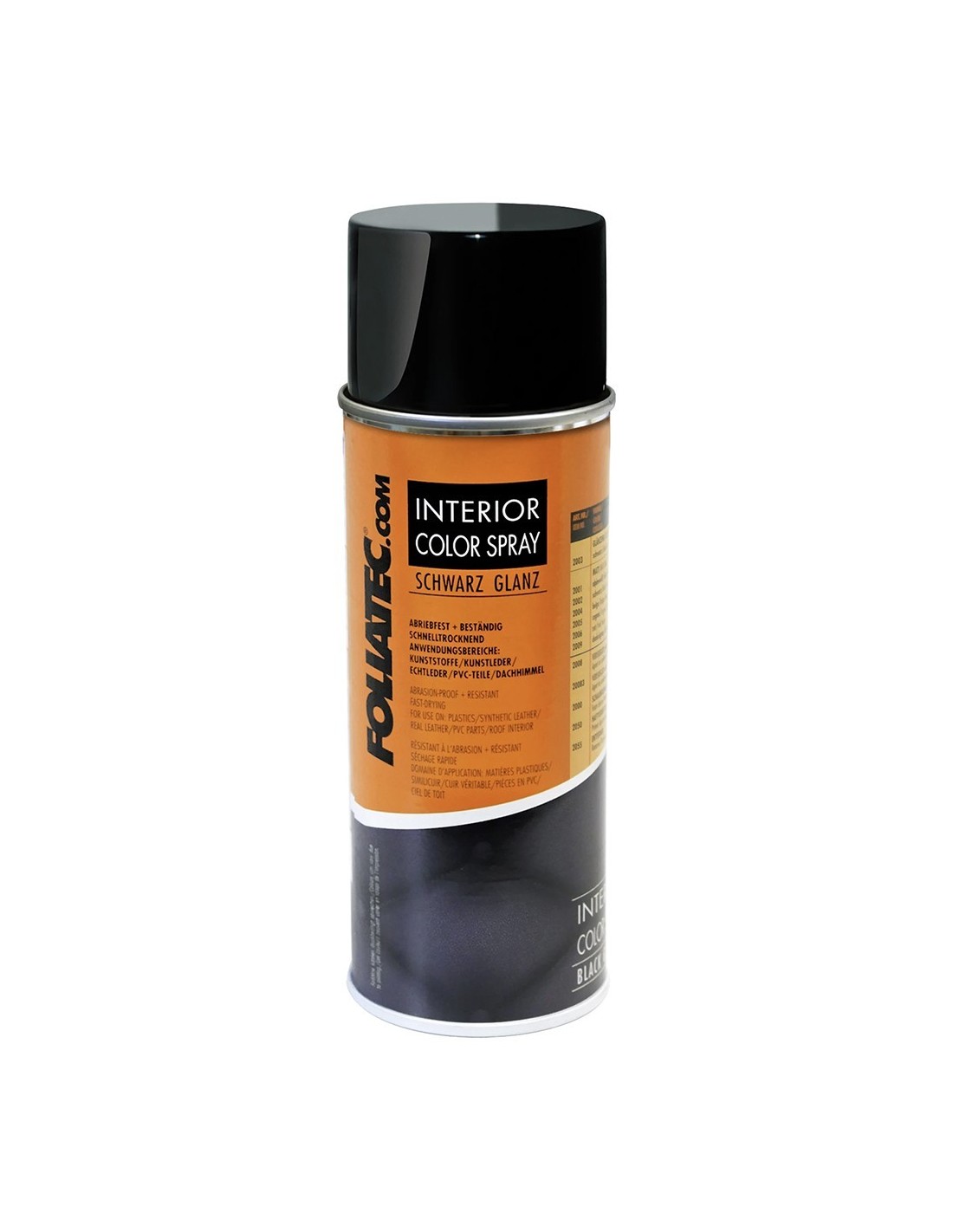 Color Spray para plástico, cuero artificial y cuero auténtico INFORMACIÓN DEL PRODUCTO Con nuestros aerosoles y pinturas, no solo será su vehículo el que atraerá la atención de las personas, ya sea por dentro o por fuera, plástico o cuero, rueda o lámparas: ¡tenemos exactamente lo que necesita! Interior Color Spray colores plástico suave, tapicería de cuero artificial y cuero real - en la mejor calidad. La composición química especial proporciona una penetración profunda del color en el material, para formar una unión permanente y elástica. La estructura de la superficie permanece inalterada. para plástico, cuero artificial y cuero real resistente a la abrasión y elástico secado rápido también para telas lisas y tensas (no se puede quitar) APLICACION Limpieza con limpiador de espuma interior (Artículo n. ° 2000). Plástico duro: prepare la superficie con el imprimador interior (Artículo n. ° 2050). Morir con spray de color interior (número de artículo 2001, 2002, 2003, 2004, 2005, 2006). Opcional: aplique un sello protector con un acabado brillante con el sellador para interiores (Artículo n. ° 2008). Para obtener más instrucciones, lea la hoja de APLICACION.