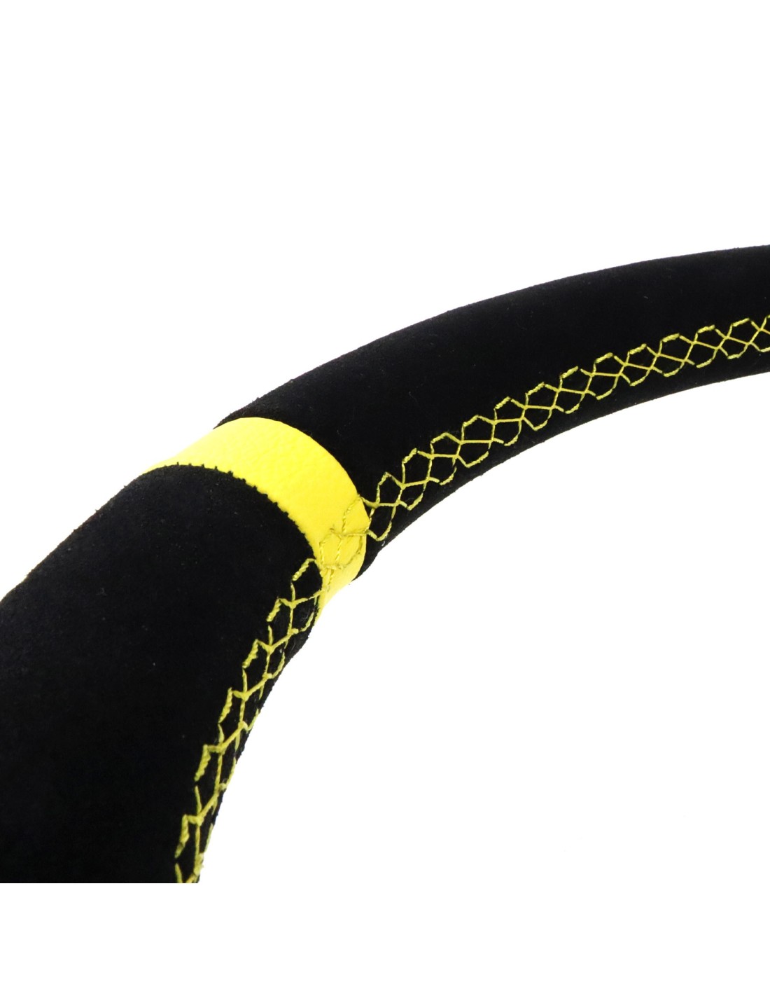 MATERIAL Y COLOR: Volante con terminacion en piel vuelta para generar una comoda y suave sensacion al colocar las manos en el volante. Volante de coche color negro, ribete amarillo y costuras amarillas. Cuenta con 3 brazos de aluminio negro. Por otro lado, es un volante coche deportivo antideslizante. Esta caracteristica es fundamental para un mayor confort, ya que las manos no se te resbalan. ¡Conseguiras un mayor control durante la conduccion!
