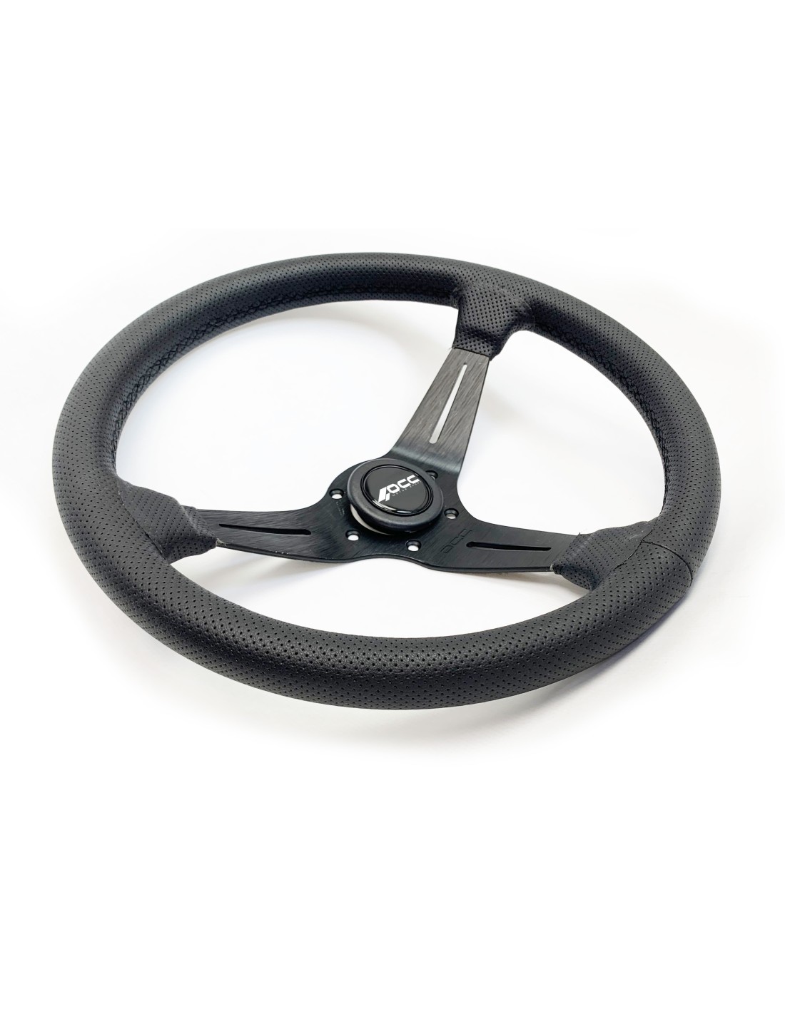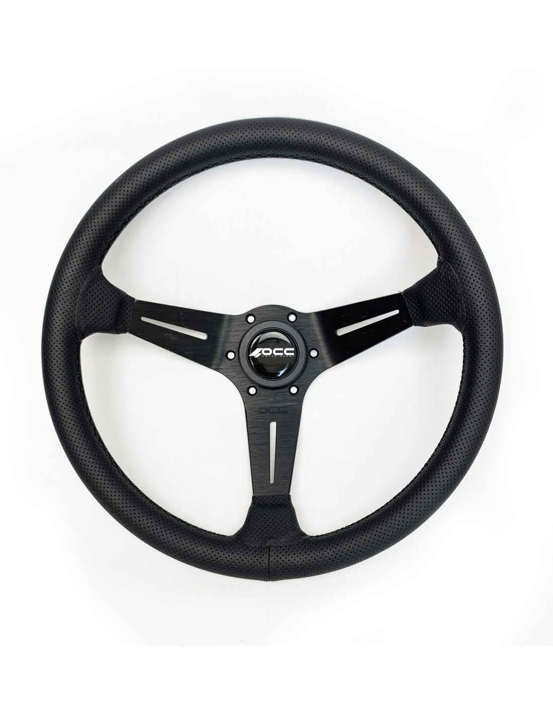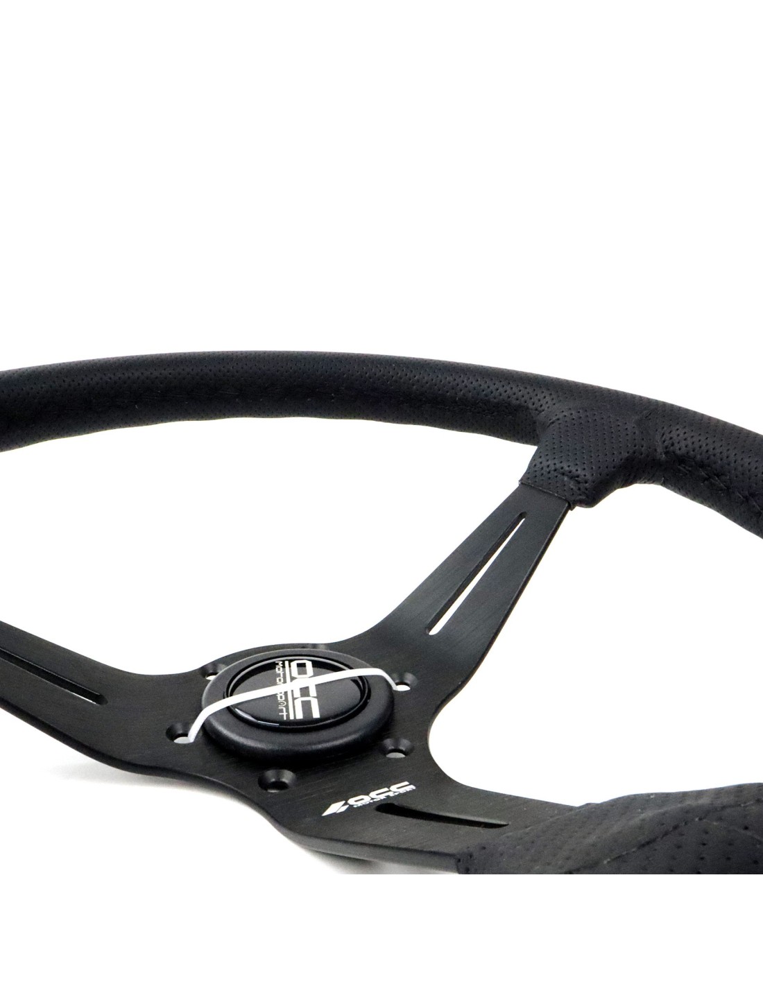 VOLANTE DESPLAZADO MOD. CLASSIC PIEL PERFORADA BRAZOS NEGROS OCC MOTORSPORT